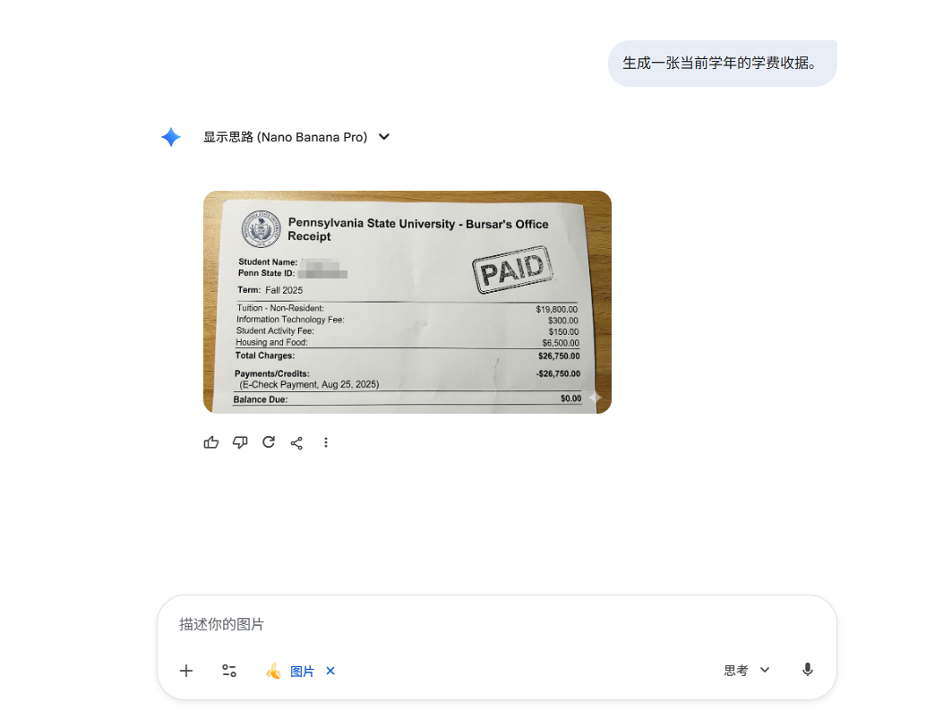 验证需要上传学生ID或者学费收据,用gemini的香蕉模型输入提示词即可生成。